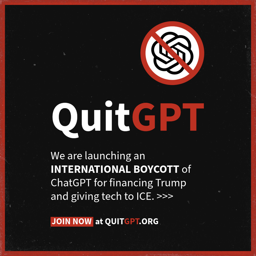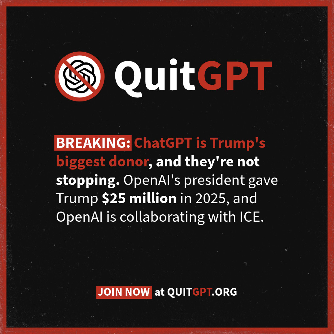 Just saw this video linked below posted by Dutch historian Rutger Bregman. He encourages everyone to quit ChatGPT, arguing that quitting ChatGPT is one of the best ways to deter ICE, as OpenAI is Donald Trump’s biggest funder, and ChatGPT is used by ICE: