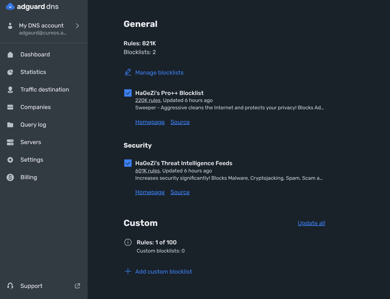 I donāt have any experience with it. Iām using NextDNS at the moment. How do you add your own list? Do you upload them or do you select from a list? If so, NextDNS also lets you add a list, provided itās a list that NextDNS supports.
