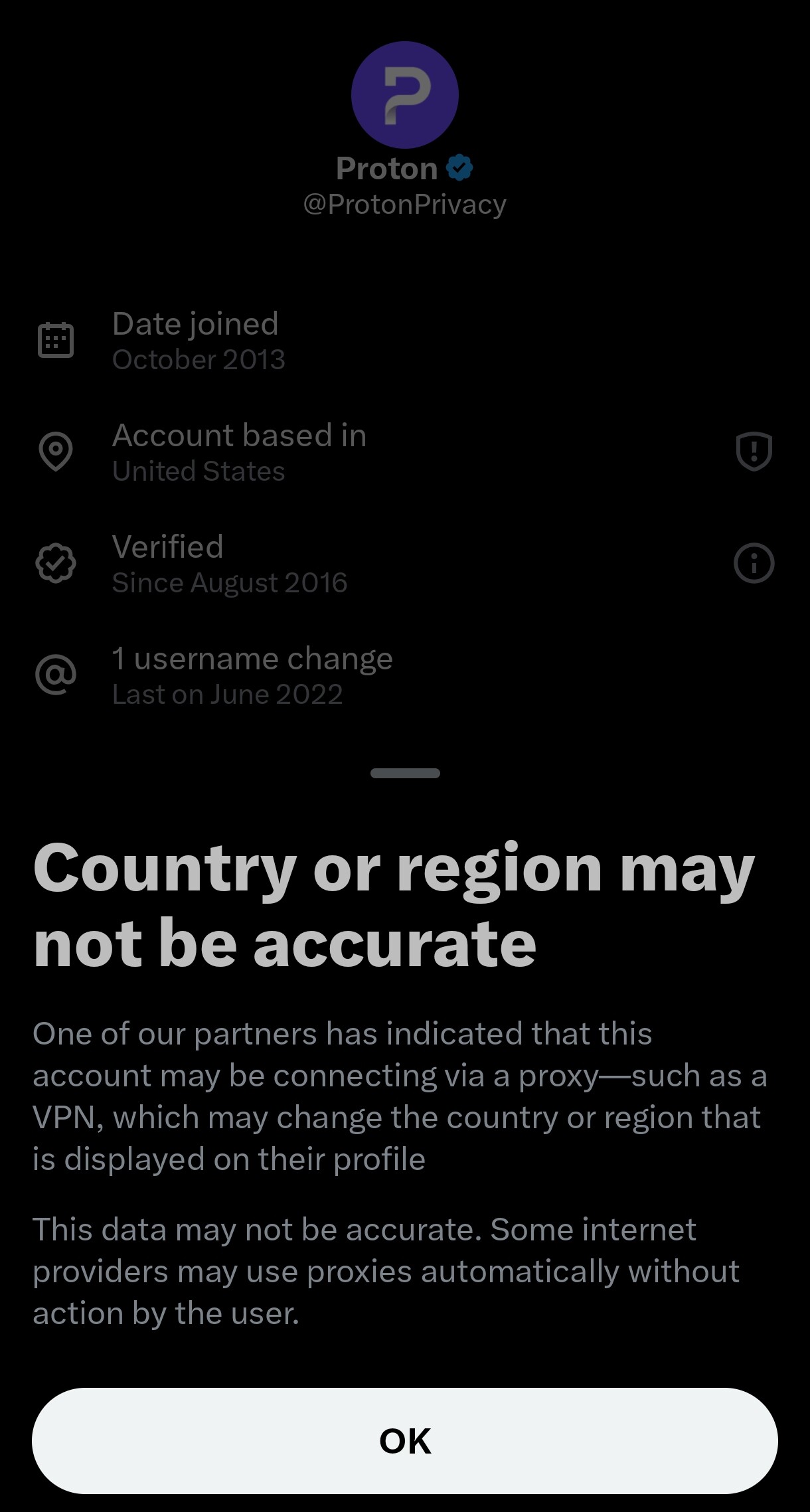 Also, depending on how this feature of X works, they may be simply using IP addresses through which the account is accessed to name the country. And it’s Proton, they may be using a VPN for all their activities anyway so you never know.
