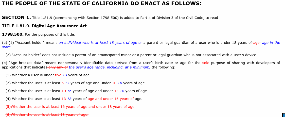 - The bill mandates an additional DOB field for OS accounts, which users presumably self-report during account setup
