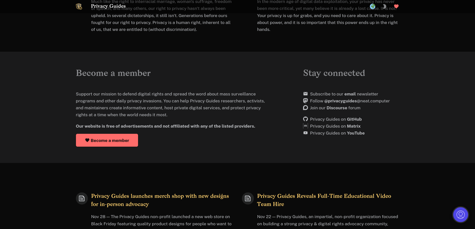 First, I want to say I appreciate everything PrivacyGuides does for our community. Today, I became a member by donating at https://www.privacyguides.org/ I just realized there a second membership site that is not connected at Privacy Guides Fund to connect to the forums account and earn some kind of rewards.