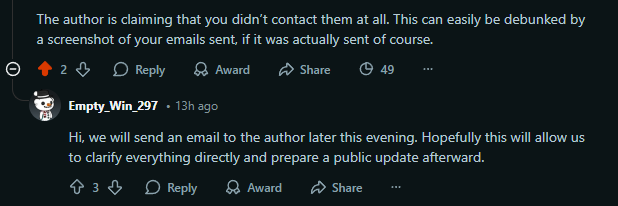 Instead they blame the author of these findings: “document you shared contains several inaccuracies”, “we have already contacted author … but never received a reply”.