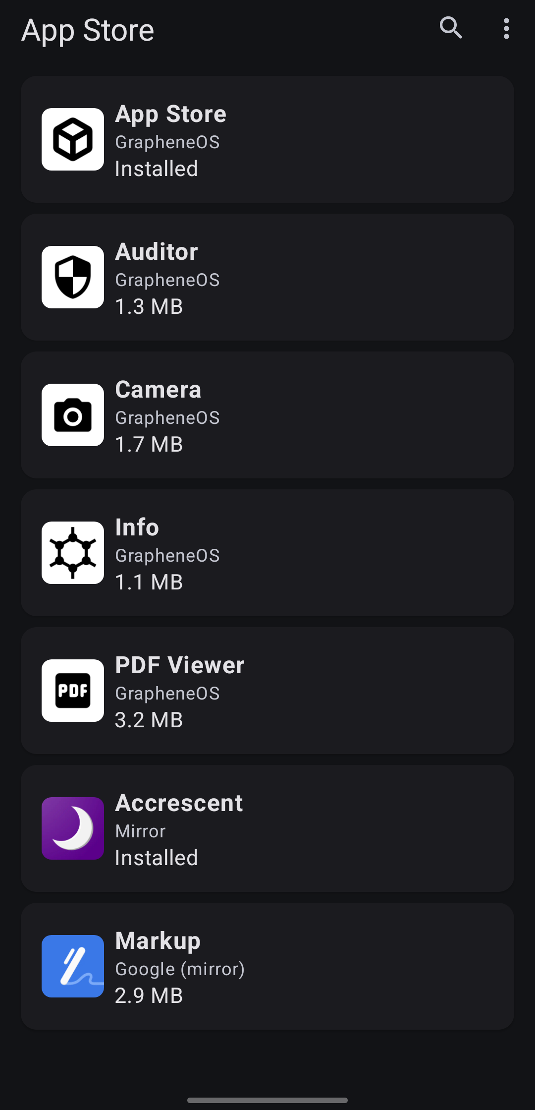 Out of those 5 apps, i tried their secure pdf viewer, and i’m sure it’s the most secure “try ur best fbi” pdf viewer on the planet, but then i went back to Orion viewer (a foss pdf viewer) and the night and day difference is big in terms of usability and features. So yeah, not too satisfied so far. Will try the camera next and see what features it lacks compared to the stock samsung camera (but im not gonna post it cuz i dont wanna spam). But yeah, an app store with 5 apps (37 if u count Accrescent’s) isn’t really an app store imo, it’s more like an app closet