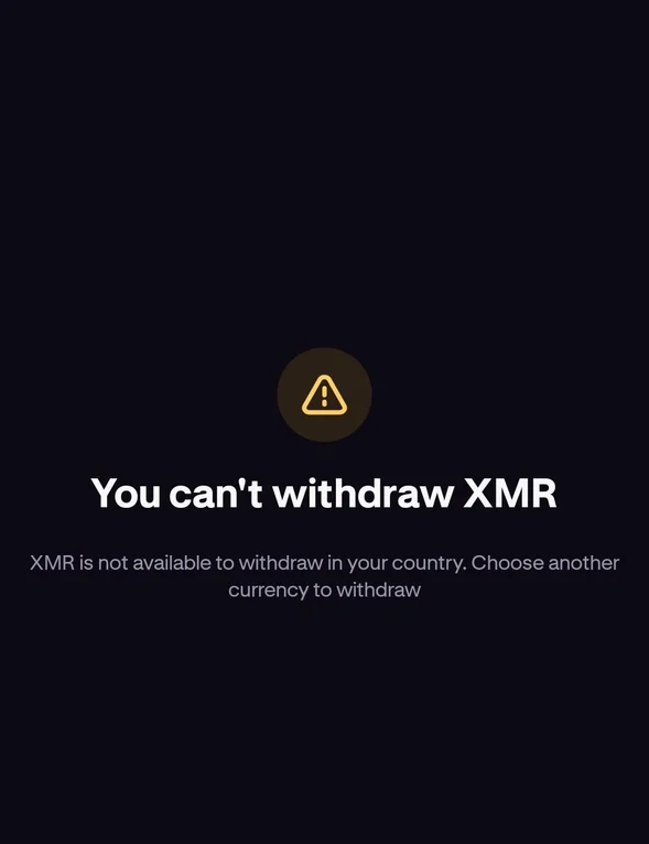 FWIW I reached out to their support team about this and they told me that XMR withdrawals are temporarily paused due to an “incident.” These types of error messages are being triggered as a result. Sounds like it could just be technical difficulties.