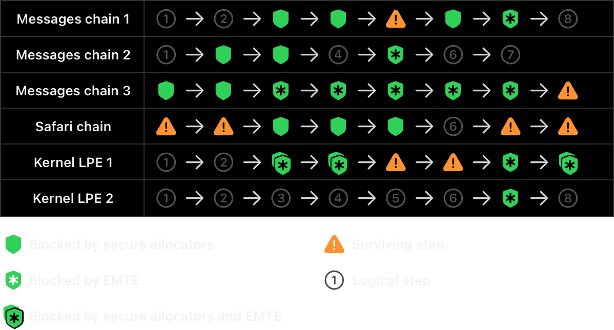 I also don’t know how robust or complex their other memory safety systems are, so the likelihood that they’d even be exploited in a way that additional EMTE could prevent in the first place.
