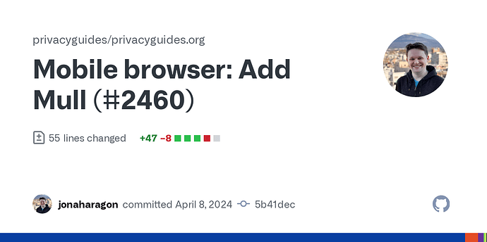 Btw my vote goes for adding Mull to the recommendation list alongside Brave.