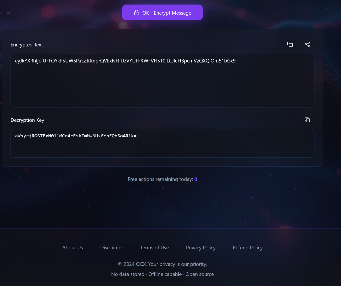 it seems that it’s a fairly recent PWA which allows messages to be encrypted before sending them to whatsapp, email etc. The user who receives the encrypted message goes on the app to decrypt the message . The app gives 5 free actions daily. i’m using the free plan for now i haven’t tried the paid features yet which allow you to encrypt images from what I have read