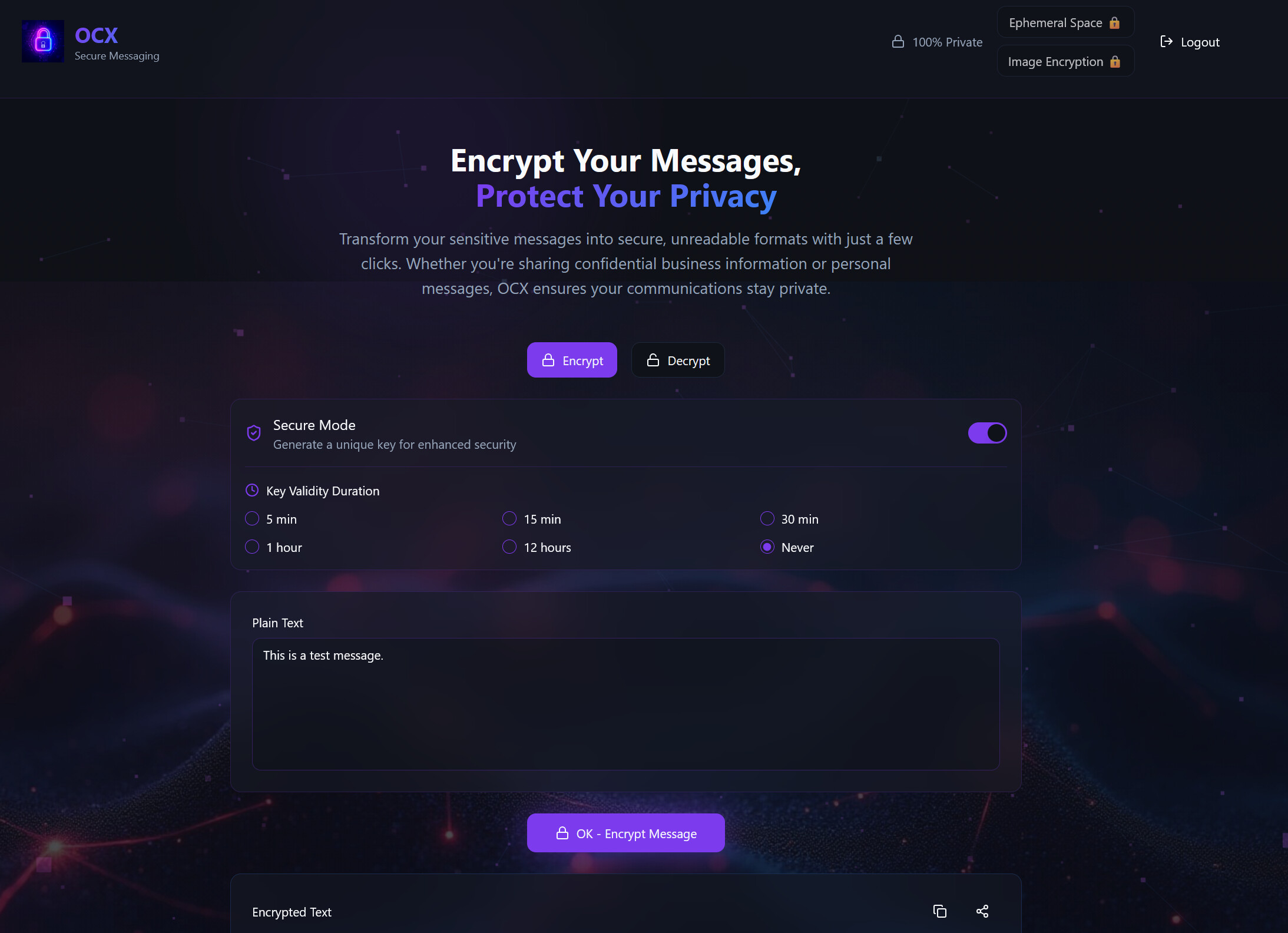 The encryption is done locally… no servers are involved. There’s an option that lets me activate a security key without which the message cannot be decrypted.