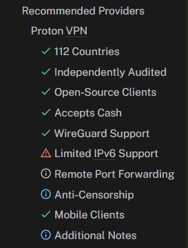 If we really value compatibility, then we could also mandate IKEv2. This would then just leave Proton and IVPN. What you propose is lowering other standards to let other VPNs go in, which isn’t what PG does IMO.