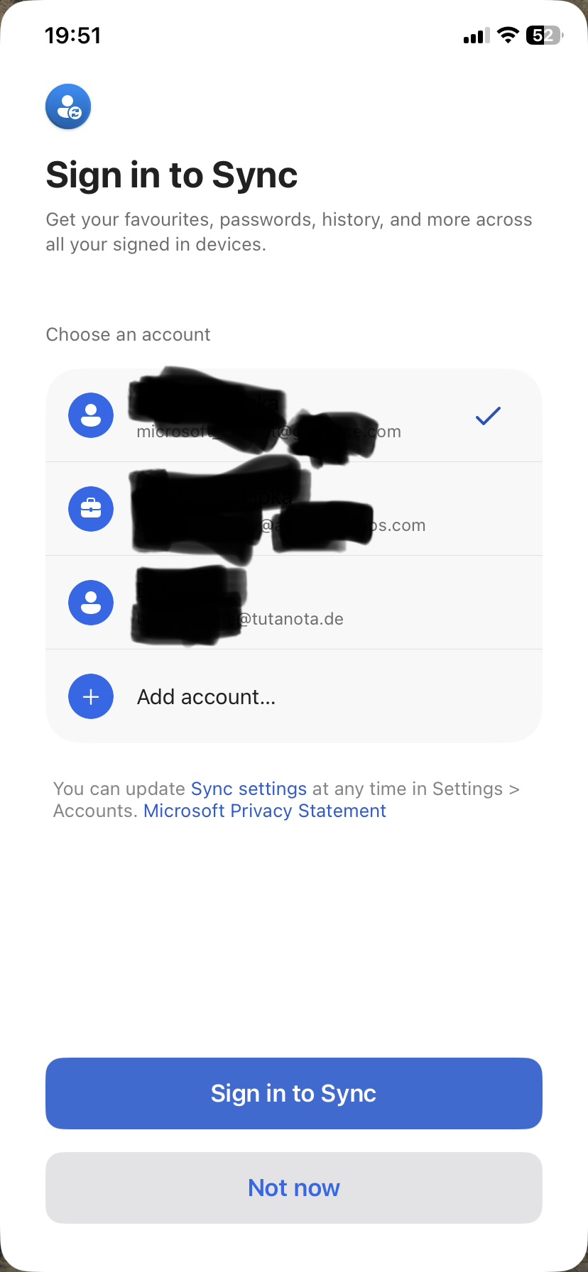 You are right. This is welcome screen from freshly installed Microsoft Edge. Why it has access to my mail accounts? It’s privacy violation from the beginning. Only one of this accounts is shared through Slack app (and still - it shouldn’t be by default in iOS).