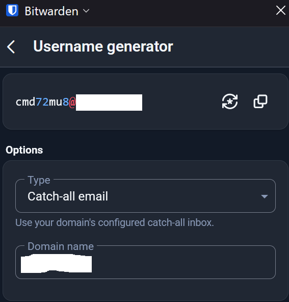 I create an account I in Bitwarden, using their username generator to create the email.