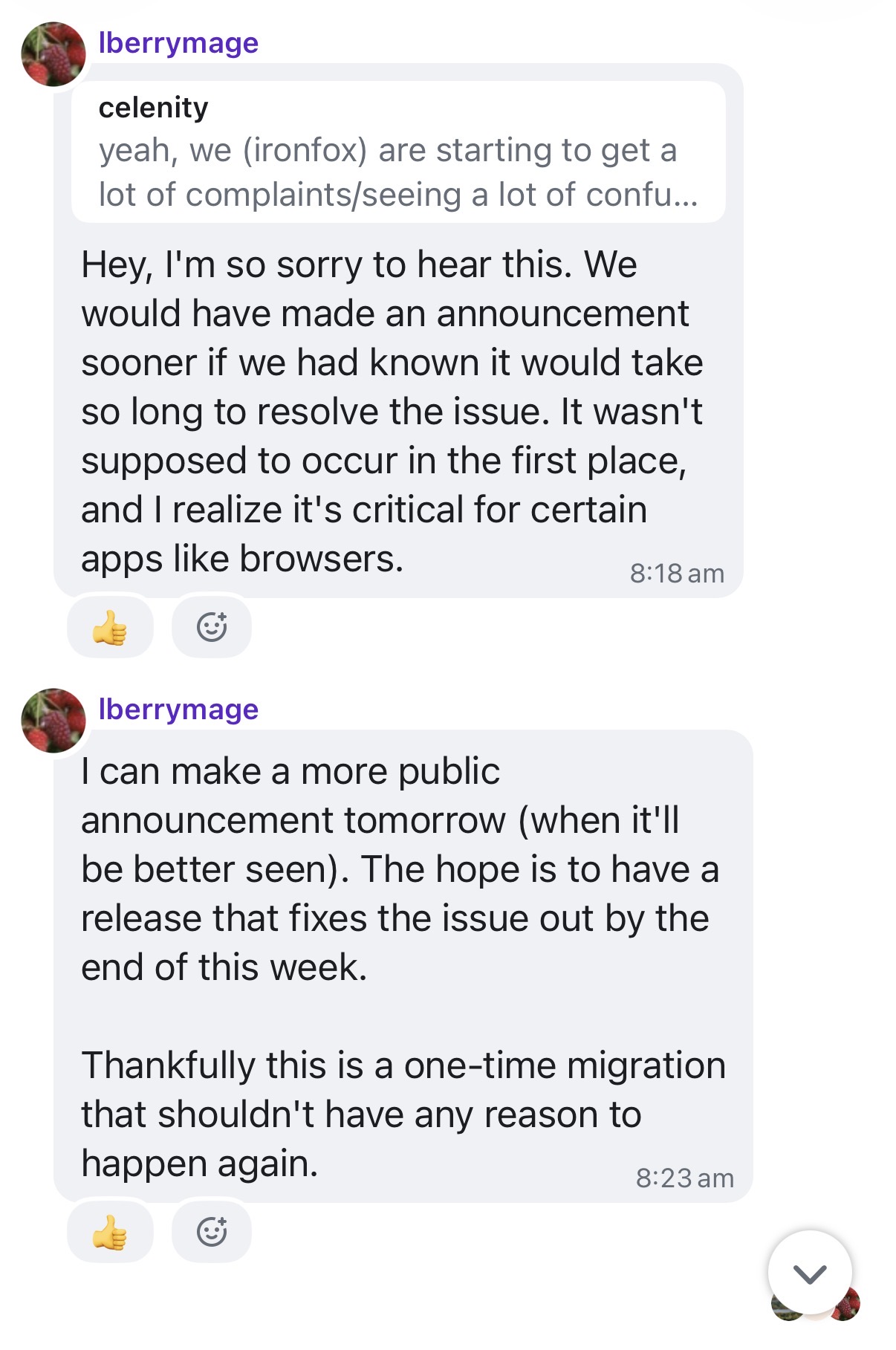 I was unable to find an official announcement from the developer so I’ll link to this comment on the GrapheneOS forum: What's the deal with releases on Accrescent? - GrapheneOS Discussion Forum
