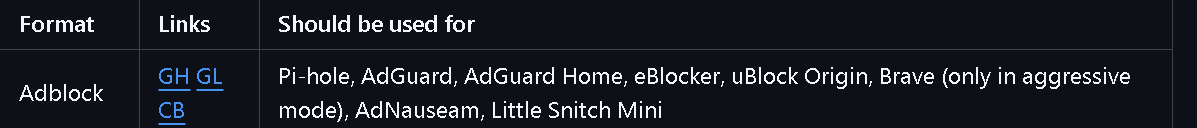 Hello everyone, how can we add Hagezi list inside AdGuard on MacOS? On Native Tracker - Broadband tracker of devices, services and operating systems section, there are different categories on the specific line Apple (iOS, macOS, tvOS) (AdBlocker, Domains, etc.) with diffferent sub categories (GH, GL, GB). Which one do I have to choose?