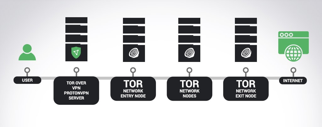 At Proton VPN, we implement Tor over VPN, meaning your Internet traffic is encrypted all the way through the Tor network, and your true IP address is never revealed to your ISP or to any Tor nodes.