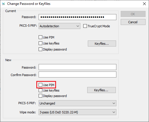 The third point is what seems shocking. It basically means, use a lower value to decrypt faster (because your encryption protection is weaker). And they should remind that this applies only to passwords shorter than 20 characters if I understood this correctly above. But in any case.. what’s the deal here? I guess most people use around 20+ chars, so this PIM value will have a role in the strength of the encryption. If you go in there on the VeraCrypt volume creation wizard, you are not told that if you enter a value lower than 98 or 485 for sha256 and sha512 respectively, you are actually decreasing the strength of the encryption… wtf. I mean what if you enter a really low value and you have no idea about this? This is pretty lame tbh. Well at least you can tweak the PIM value it seems without having to redo the entire thing (or maybe you do because on the screenshot it looks like it wipes the contents)