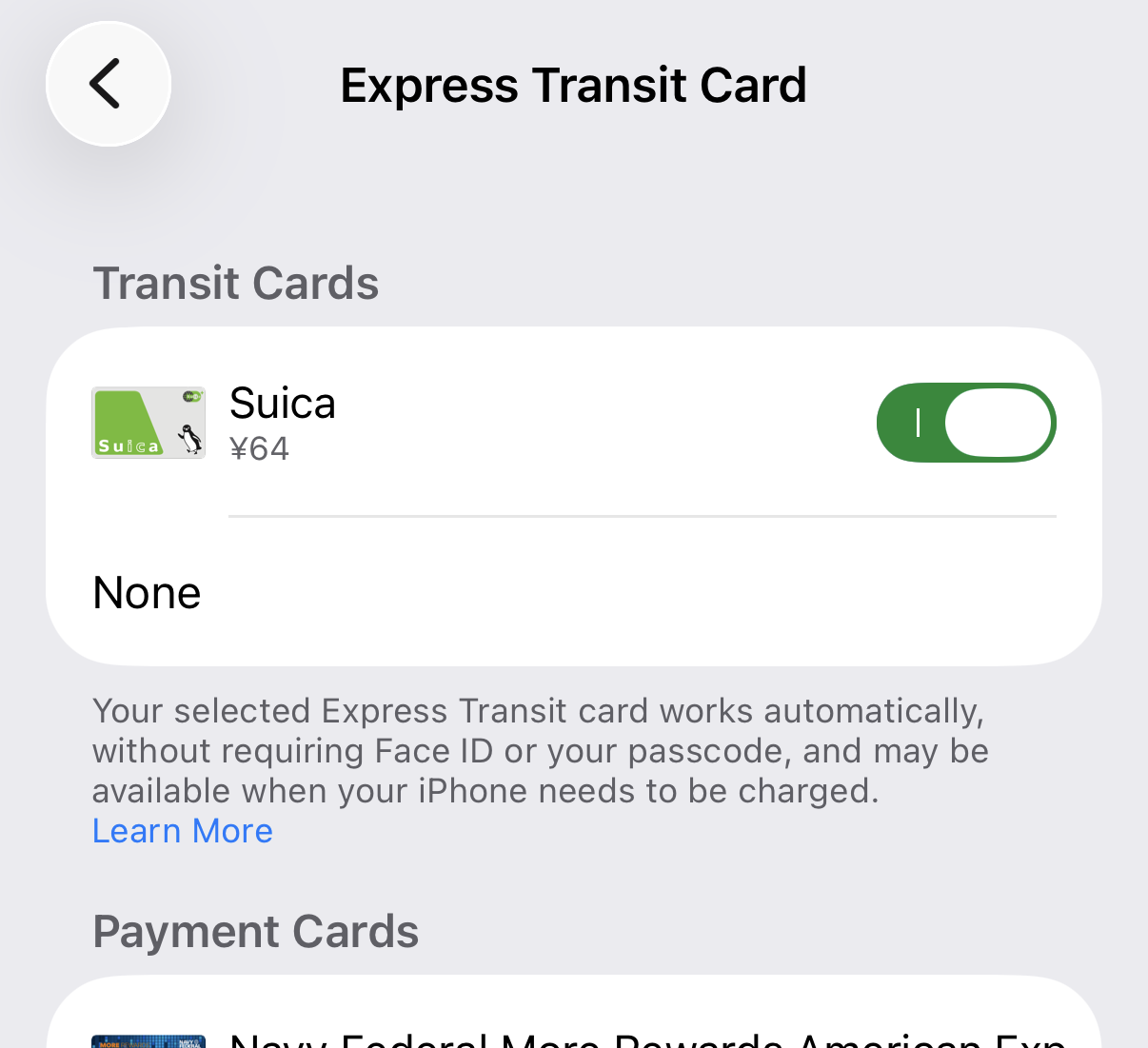 Can anyone confirm whether Express Transit mode was enabled by default with a credit card on their device? It wasn’t enabled with a credit card on mine because it was instead enabled with a Japanese Suica transit card I have, and it wasn’t enabled for someone else I asked either.