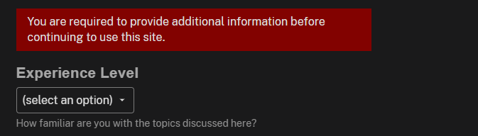 Would you rather users potentially lie about their experience level or have a Trust and Safety-like system that makes the determination, at this point it can’t be inbetween.