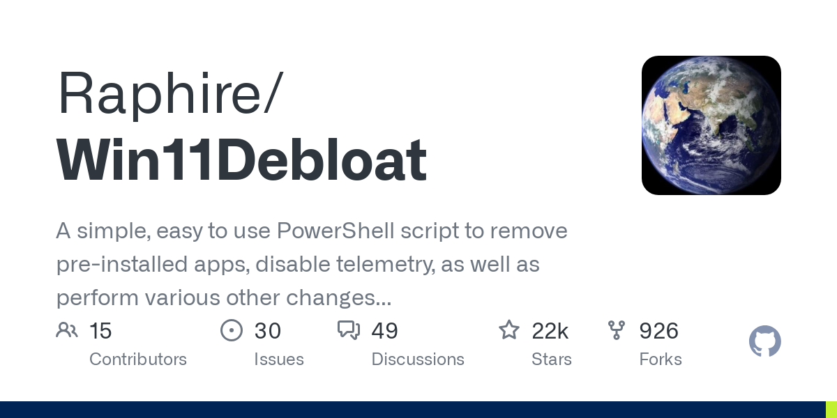 There are many tools on Github for Windows debloating and to make it a lot more privacy respecting.