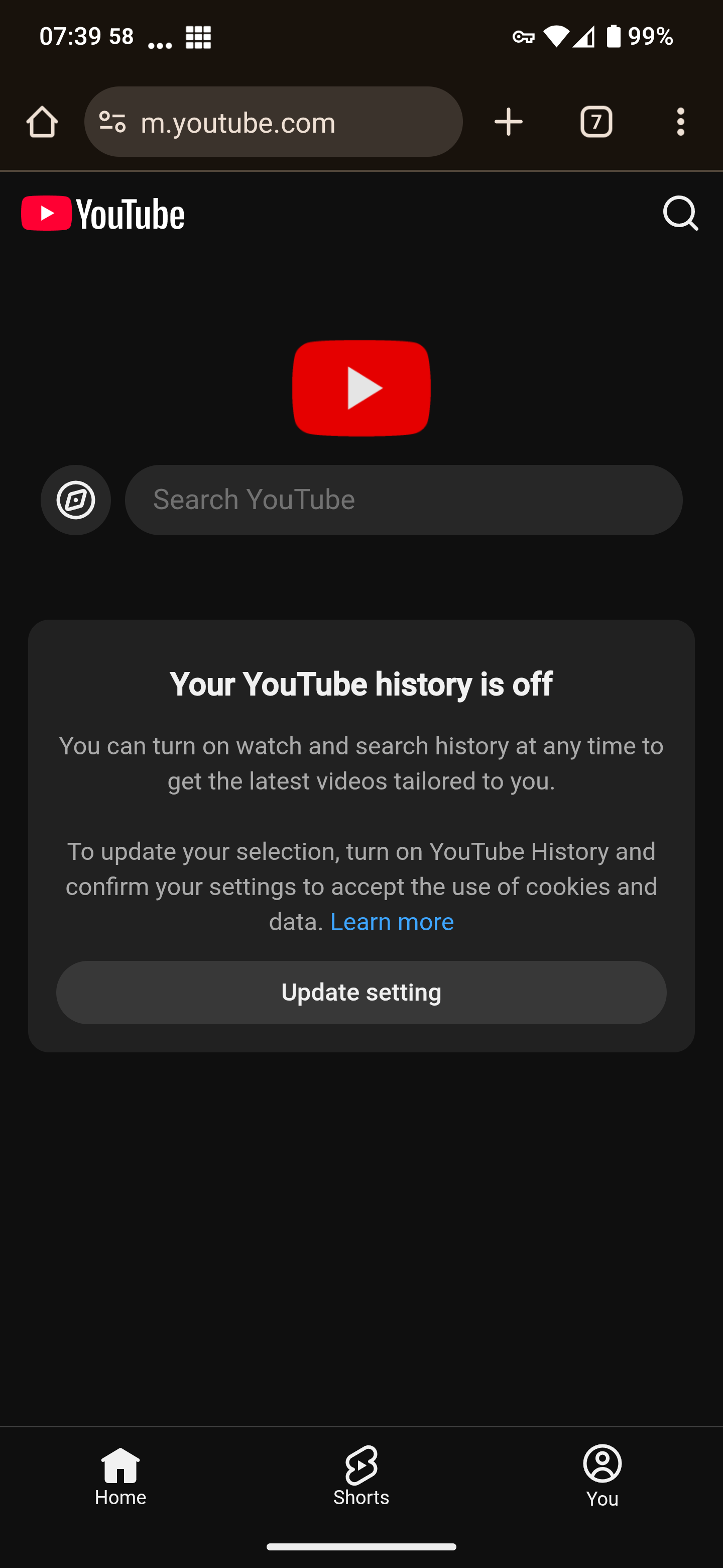 I think that having an empty page with no videos is by far the best default ever for YT. ![]()